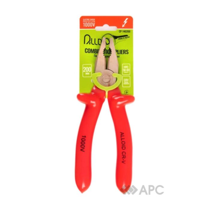 Пасатижі діелектричні Alloid CP-140200 — губцевий інструмент, виготовлений методом гарячого кування з високоякісної загартованої хром-ванадієвої сталі твердістю 58-60 HRC. Застосовується для роботи з проводами та кабелями при монтажі та ремонті електрообладнання під напругою до 1000 В.