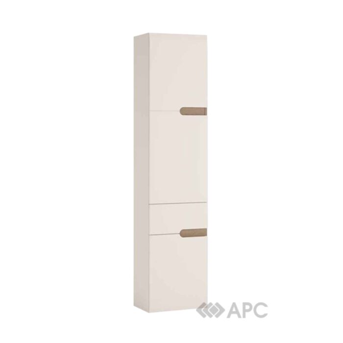 Шафка з колекції Linate виробництва компанії MebleWojcik. Меблі з колекції Лінат є лідером в продажах у своєму сегменті. Глянцеві фасади білосніжного кольору, заокруглені форми та додаткове освітлення – головні переваги цієї колекції.