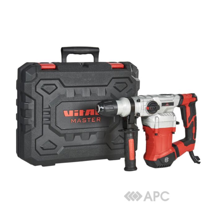 Перфоратор Vitals Master Ra 3013DS 145593 — компактна універсальна модель для високошвидкісного виконання завдань підвищеної складності. Перфоратори — категорія електроінструменту, що розрахований на пробиття отворів буром за принципом зубила. Двигун перфоратора забезпечує зворотно-поступальні рухи ударника, внаслідок чого робочий матеріал руйнується від удару. Застосовується для пробивання наскрізних отворів, штроблення стін та інших поверхонь. Головним чином він буде корисний при роботі з матеріалами, що важко піддаються обробці: бетон, камінь, цегла. Для цих цілей він підходить найкраще, залишаючи далеко позаду електричні ударні дрилі. Головною відмінністю перфоратора від ударного дриля є те, що в останньої ударний ефект досягається чисто механічним шляхом, а в перфораторі для цього використовується пневматичний (або електромеханічний) пристрій. За рахунок цього перфоратори мають більшу потужність і більш пристосовані для описаних операцій. Діаметр свердління: 30 мм для бетону, 13 мм для сталі, 42 мм для дерева.