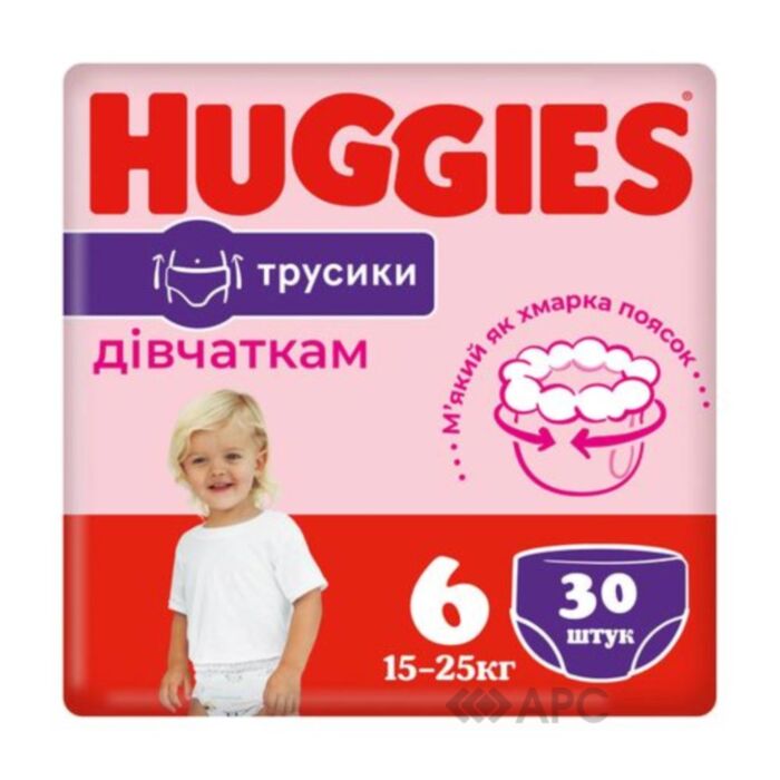 Підгузки-трусики дитячі Huggies Girl розмір 6 (15-25 кг) 30 шт. — хороший вибір для комфорту вашого малюка. Особлива анатомічна форма спеціально розроблена для дівчаток, забезпечує максимальну зручність. М’яка поверхня DryTouch, що дихає, швидко поглинає та утримує вологу, зберігає шкіру сухою, мінімізує ризик подразнень, попрілостей, дозволяє повітрю циркулювати. Спеціальний індикатор у вигляді смужки підкаже, коли варто змінити памперс. Його легко надягати та зручно знімати, навіть коли маля активно рухається. Є клейка стрічка для утилізації. Еластичний манжетний поясок розтягується, гарантує надійну фіксацію.