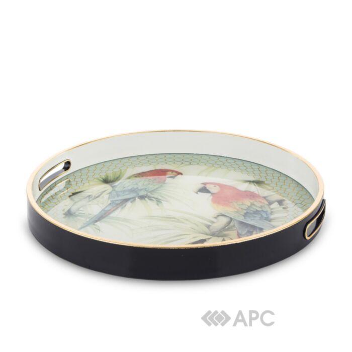 Піднос Art-Pol — це спеціальний посуд від польського виробника, що призначений для подачі їжі та напоїв, або перенесення посуду. В ньому зручно подавати сніданок у ліжко, адже завдяки високим бортикам шанс перекинути страву є досить низький. Виділяється сучасним дизайном, виготовляється з міцного пластику та скляного дна в універсальному чорному кольорі. Такий виріб стане окрасою будь-якої кухні, адже всередині розміщується яскравий, цікавий малюнок папуг. Розміри товару 36х4 см.