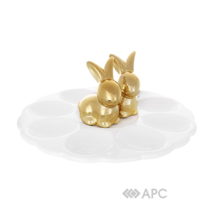 Підставка для яєць BonaDi Золоті Кролики 727-525 20 см виконана з якісної порцеляни з глянцевим покриттям буде служити декоративним та оригінальним елементом на Вашій кухні. Вона призначена для варених чи фаршированих яєць, може бути застосована для подачі писанок. Підставка також може служить прекрасним подарунком для рідних і близьких.