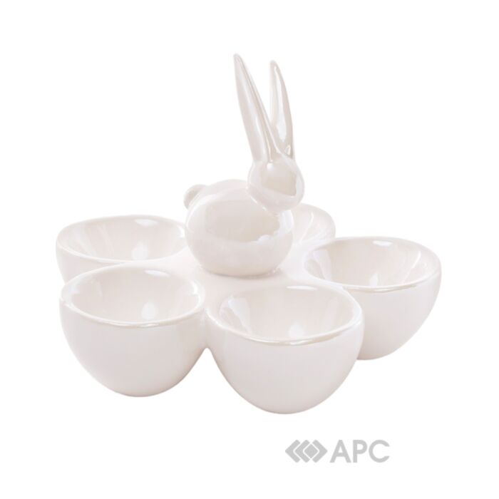 Підставка для яйця BonaDi 733-154 Кролик 15*15*12 см біла виконана з якісної кераміки і буде служити декоративним та оригінальним елементом на Вашій кухні. Вона призначена для варених чи фаршированих яєць, може бути застосована як великодня тарілка для подачі писанок.