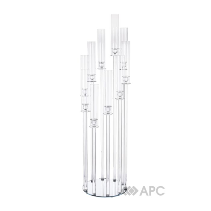 Підсвічник Art-Pol 169414 134*37 см – це дивовижний елемент декору, що привертає увагу своїми розмірами: його висота становить 134 см, а ширина – 37 см. Така оздоба стане центральним акцентом у будь-якому приміщенні, додаючи йому розкоші та вишуканості. Стильний дизайн виробу поєднує в собі класичні та сучасні елементи, що робить його універсальним для різних стилів інтер'єру. Витончені прозорі скляні тримачі на металевій підставці дозволяють розмістити 10 свічок та насолоджуватися чарівною грою світла. Цей підсвічник ідеально підходить для використання у вітальні, їдальні або холі, де він створить атмосферу тепла та затишку. Він також може стати чудовим доповненням до декору ресторану, готелю або іншого громадського закладу.