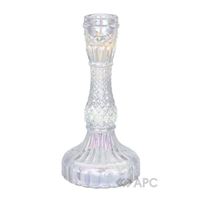 Підсвічник BonaDi 133-012 17 см перламутровий – цікаве доповнення сучасного інтер’єру. Призначений для тонкої свічки, яка міститься у невеликий отвір на вершині. Прозоре скло, стилізоване під різьблений кришталь з перламутром, добре віддзеркалює м’які блиски живого вогню та створює чарівну гру світла і тіней. Витончена форма виробу стильно доповнить естетику приміщення, а його практичність та функціональність зробить його важливим елементом святкових застіль та домашніх свят. Елегантні та розкішні свічники та новорічний декор можна придбати в нашому інтернет-магазині з доставкою в усі куточки України.