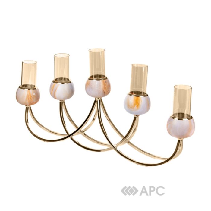 Підсвічник декоративний Lefard 811-028 на 5 свічок 50*9*24 см чудово доповнить будь-який інтер'єр та додасть краплю вишуканості та розкоші. Виріб стане чудовим рішенням для створення романтичної чи святкової нотки у Вашій оселі. Матеріалом, з якого виготовлений цей декор, є метал та скло, що дозволить виробу служити протягом довгого часу.