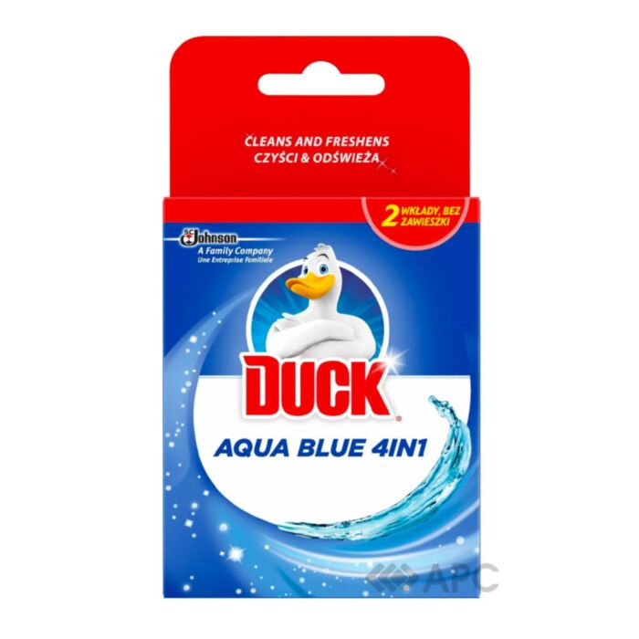 Підвісний очищувач унітаза Duck 4в1 зі змінним блоком — це гарантована свіжість, ідеальне очищення, надійний захист від нальоту та забарвлення води в яскраво-синій колір для візуального позначення ефективності. Блок легко кріпиться під обідок, тож засіб активується при кожному змиванні води, утворюючи піну та розповсюджуючи приємний аромат. Має антибактеріальну дію — знищує мікроби, бактерії, грибок, гарантуючи гігієнічність поверхонь.