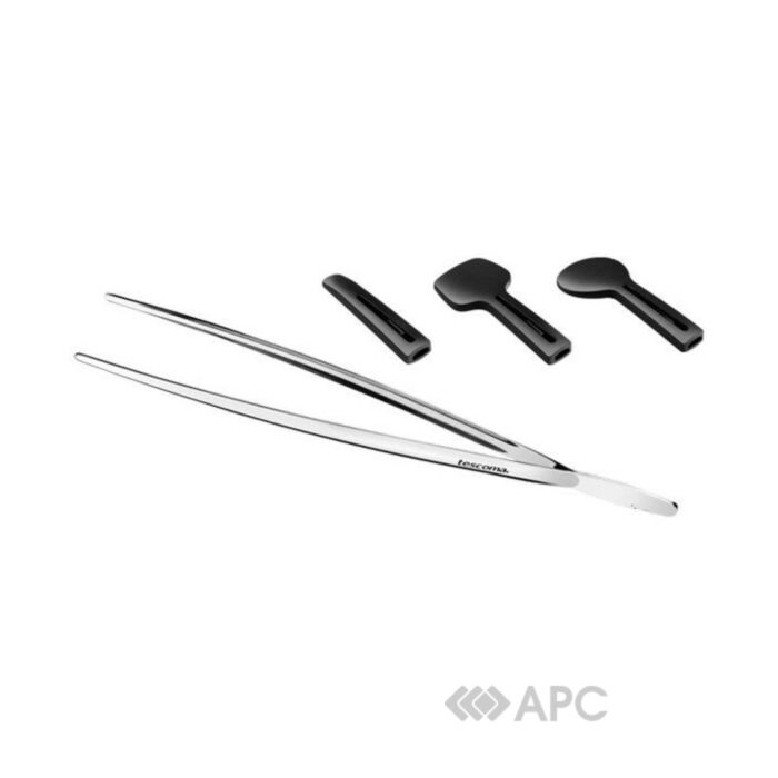 Унікальний кухонний пінцет з нержавіючої сталі з 3-ма парами наконечників з термостійкого нейлону. Відмінно підходить в якості класичного пінцета, широких щипців і розливної ложки, підходить для посуду з антипригарним покриттям, не пошкоджує поверхню. Прозора кришка служить як підставка для відкладання пінцета, з петлею для підвішування. Можна мити в посудомийній машині.