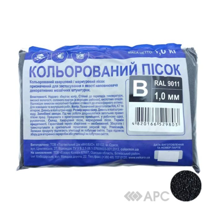 Пісок кварцевий Aura — це спеціальний матеріал від українського виробника, що використовується для наповнення декоративних мозаїчних штукатурок. Виготовляється на кварцовій основі, має графітовий чорний колір, підходить для зовнішнього та внутрішнього застосування. Характеризується стійкістю до температур, вологості, довго зберігає колір, повністю відповідає екологічним нормам. Розмір зерна від 0,6 до 1 мм, вага товару 1 кг.
