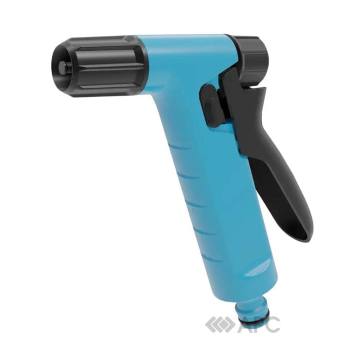 Пістолет-розпилювач встановлюється на шланг для поливу і здійснює зрошення рослин точним і делікатним способом. Корпус виробу виконаний з якісного пластику. Він оснащений ергономічною ручкою з фіксатором, що дозволяє здійснювати безперервний полив, і двома режимами поливу: точкова струя та розпилення. Пістолет для поливу - це можливість контролювати рівень витрати води та поливати навіть найвіддаленіші куточки ділянки.