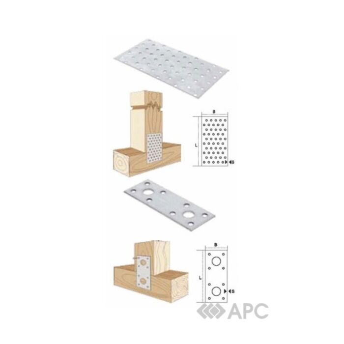Пластина перфорована плоска Metalistas 41530 використовується для з'єднання частин дерев'яної конструкції в одній площині. Оцинкована сталь дає можливість застосовувати деталі для кріплення на відкритому повітрі. Пластина легко монтується шурупами та цвяхами. Призначенна для з’єднання дерев’яних конструкцій, брусів, балок навіть з сталевими та бетонними каркасами.