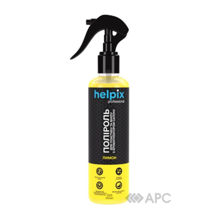Поліроль для пластика й вінілу Helpix 200 мл захищає пластикову поверхню автомобіля від появи пилу або плям. Аромат: «лимон».
