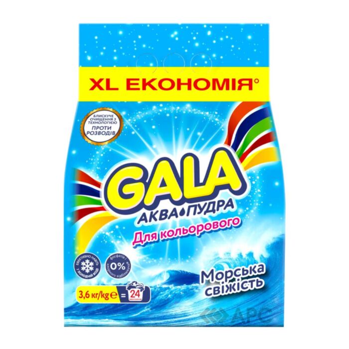 Купити пральний порошок GALA Аква-Пудра Color Морська свіжість 3,6 кг можна в інтернет-магазині Арс. Доставлення здійснюється в будь-який населений пункт України.
