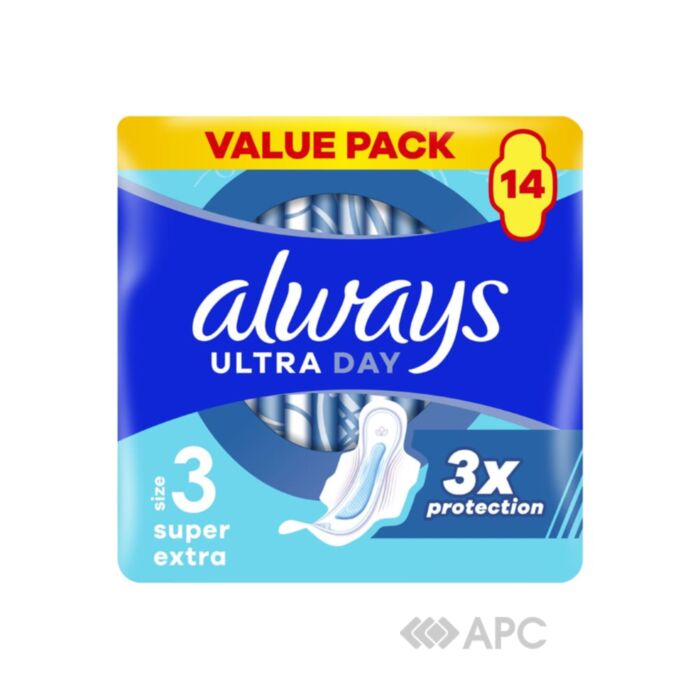 Прокладки гігієнічні ультратонкі Always Ультра день Cупер Екстра 14 шт - надійне і комфортне рішення для забезпечення захисту протягом всього особливого циклу. Із захисними зонами та крильцями, вони надають ефективний захист від протікань, забезпечуючи вам впевненість та комфорт. Індивідуальна упаковка робить їх зручними для перенесення та зберігання, а схвалення від дерматологів від Skin Health Alliance підтверджує безпеку для чутливої шкіри.