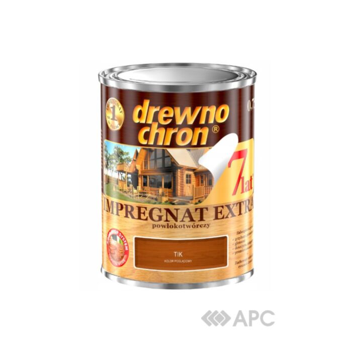 Пропитка для дерева Drewnochron Impregnat Extra плівкоутворююча тік 2,5 л - призначена для захисного та декоративного фарбування дерев'яних елементів, які знаходяться як зовні, так і всередині приміщень, не призначених для постійного перебування людей, таких як двері, вікна, садові меблі, альтанки, літні будиночки, паркани, конструкції перекриттів і дахів тощо. В основі цього просочення лежить технологія Aqua Stop System, яка використовує спеціальні олігомерні частинки, відштовхуючі воду. Ця технологія дозволяє відмінно захищати поверхню від проникнення води, яка легко стікає вниз з покриття. Такий підхід робить деревину стійкою до атмосферних чинників та запобігає утворенню цвілевого грибка.