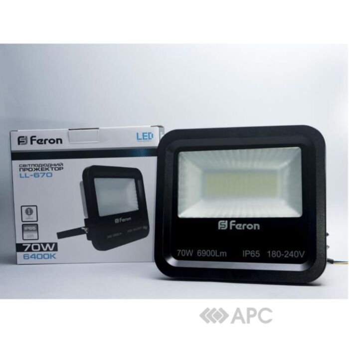 Світлодіодний прожектор Feron LED LL-670 - це високоефективний светотехнический прилад, призначений для освітлення промислових, складських, виробничих площ. Використовується також для освітлення відкритих майданчиків, дворів, стоянок, для підсвічування фасадів будівель і для акцентування окремого елемента, наприклад для підсвічування дерев. Корпус прожектора Feron LED LL-670 виконаний з алюмінієвого сплаву і має високу ступінь пиловологозахисту. Скло загартоване, ударостійке.
