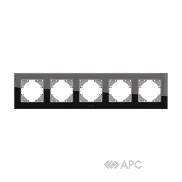 Рамка п'ятимісна Videx — це накладка на чотири вимикачі, що призначена для створення естетичного вигляду механізму. Проста та надійна конструкція має довгий термін експлуатації, здатна витримати критичні температури. Горизонтального типу монтажу, білого кольору, виготовлена зі скла. Універсальний, практичний дизайн підійде для будь-якого інтер’єру. Розміри: 370х86 мм.
