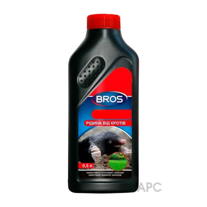 Рідина від кротів Bros 500 мл – це спеціалізований засіб, розроблений для відлякування кротів з садових та присадибних ділянок. Принцип дії цього препарату базується на використанні речовин з інтенсивним запахом, який є вкрай неприємним для кротів, змушуючи їх залишати оброблену територію. Препарат не завдає шкоди тваринам, а лише змушує їх мігрувати в інші місця. Використання рідини Bros є простим: засіб 30 мл (2 ковпачки) необхідно залити безпосередньо у виявлені кротовини або ходи та закрити отвір, щоб запах поширювався в тунелі.