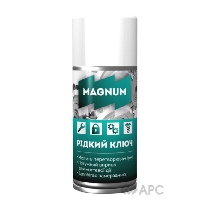 Рідкий ключ Magnum 150 мл - незамінна річ, коли виникає гостра потреба відчинити заржавілий замок, різьбове чи циліндричне з'єднання, яке примерзло чи заклинило. Також засіб допомагає проводити очищення та профілактику систем гальмівних тяг, ланцюгів, та іншого. Рідким ключем Magnum можна змащувати дверні петлі та замки, для того щоб забезпечити безперебійне функціонування.