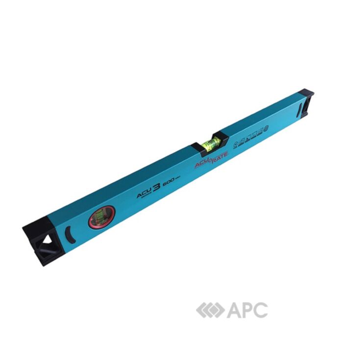 Будівельний рівень — вимірювальний інструмент, за допомогою якого з легкістю можна визначити чи має горизонтальна чи вертикальна поверхня якісь відхилення. Простота конструкції, зручність у використанні та автономність зробили коробчастий бульбашковий рівень фаворитом серед домашніх майстрів та професіоналів. Acurate ACU3 стане в нагоді як при кріпленні полиці, так і для перевірки поверхні під час стяжки підлоги. Алюмінієвий корпус посилений за рахунок ребер жорсткості (630 г/м). Наявність горизонтальної та вертикальної колб розширюють спектр використання даного інструменту. Рідина, яка знаходиться в колбах, не вигорає та не змінює своїх властивостей під впливом температури (від -20°C до +50°C). Точність вимірювання становить 0,5мм/м.