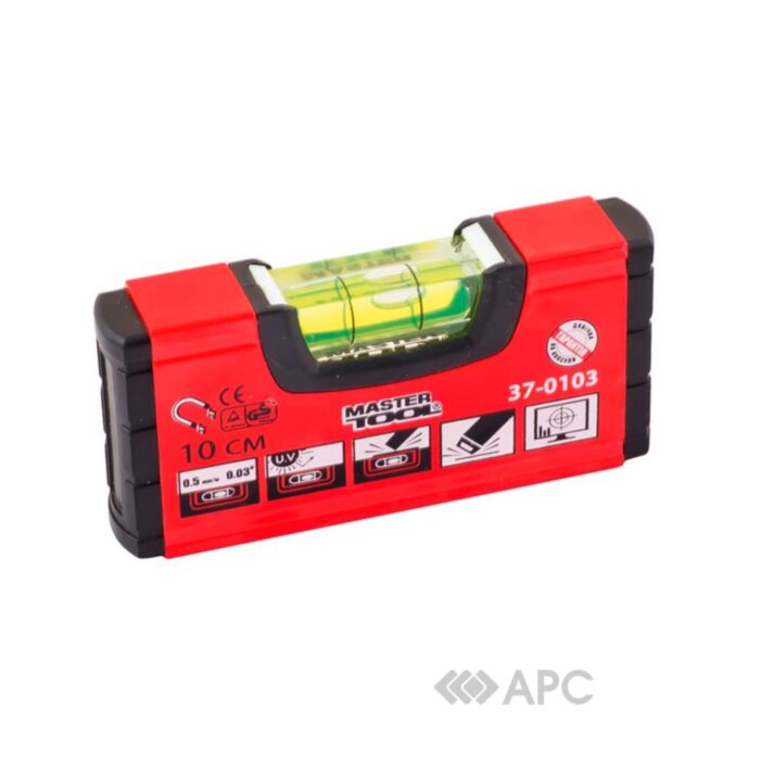 Алюмінієвий рівень MasterTool 37-0103 за допомогою однієї капсули допомагає визначити рівність поверхні з точністю 0,5 мм на метр або 0,03 градуса. Протиударні заглушки зберігають цілісність виробу. Капсула захищена від ультрафіолетових випромінювань, рідина не втрачає колір чи властивості. Нахил труб можна вимірювати завдяки наявності желоба.