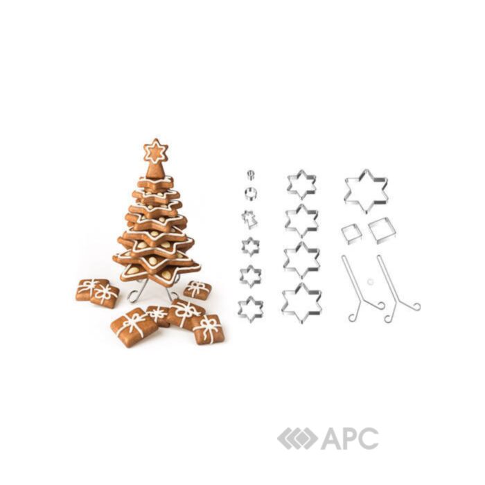 Різдвяна ялинка Tescoma DELICIA 631416 - це багатофункціональний набір для новорічної випічки. Призначений для приготування різдвяної ялинки з домашнього пряничного тіста. Можна, також, використовувати для випічки печива і пряників у вигляді зірочок різного розміру.