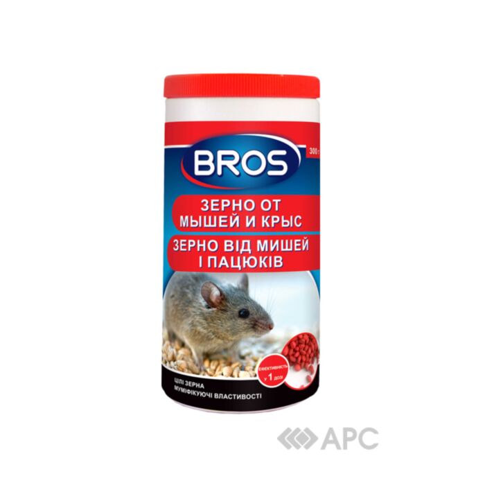 Родентицидний засіб Bros зерно від мишей і пацюків — дієва та доступна отрута актикоагулянтної дії. Приманка у вигляді цілих зерен надзвичайно ефективна, має накопичувальний ефект та муміфікуючі властивості, що перешкоджають поширенню неприємного запаху після гибелі гризунів. Смерть шкідників наступає досить швидко, максимальний ефект спостерігається через 4-5 днів після початку застосування препарату. Продукція польського виробника користується неабиякою популярністю на українському ринку завдяки високій якості та низькій вартості.