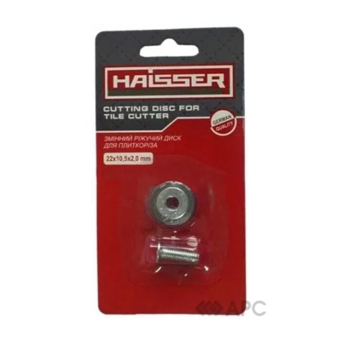 Ролик ріжучий HAISSER 64037 змінний елемент для ручних плиткорізів. Виготовлений із твердого сплаву на основі карбіду вольфраму, завдяки чому відбувається якісний та точний різ. Використовується для обробки кераміки, кахлю, скла та інших матеріалів. Змінний ріжучий диск легко встановлюється на плиткоріз та забезпечує швидку, якісну та зручну роботу. Діаметр диска 22 мм, діаметр внутрішнього отвору 10,5 мм, товщина 2 мм.