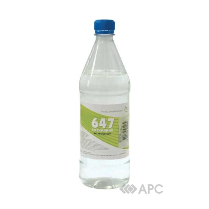 Розчинник 647 безбарвна або злегка жовтувата прозора однорідна рідина. В розчиннику не повинно спостерігатися каламуті, розшаровування і зважених часток, розчинник має однорідний склад. Розчинник застосовується: