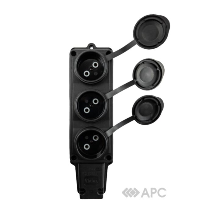 Розетка потрійна переносна Violux 930710 каучук 16А встановлюється в приміщеннях із підвищеною електробезпекою та кімнатах з складними умовами експлуатації. Виріб обладнаний спеціальними кришками, що перешкоджають попаданню пилу та інших речовин. Завдяки структурі розетки, її ефективно використовувати в приміщеннях з несприятливими умовами, як-от: перепади температури, підвищена вологість, високе пилоутворення та інші.