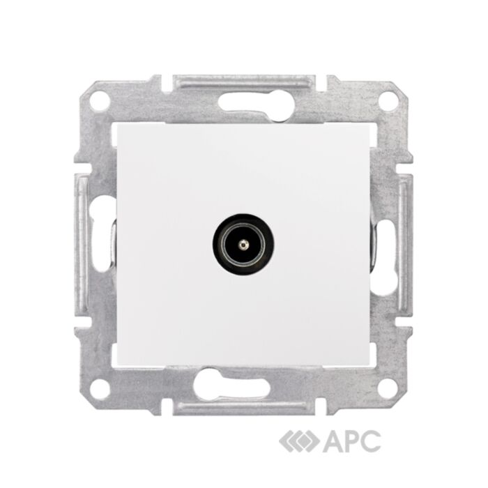 Розетка телевізійна TV кінцева Schneider Electric Sedna SDN3201621 біла використовується у декількох випадках: для підключення до кабелю одного телевізійного пристрою або для останньої ланки в ланцюжку підключень кількох телевізорів. Виріб створений з термостійкого пластику, що гарантує міцність та стійкість розеток до механічних пошкоджень і подряпин. Тип телевізійного роз'єму: 1 TV конектор IEC 9.52 мм.