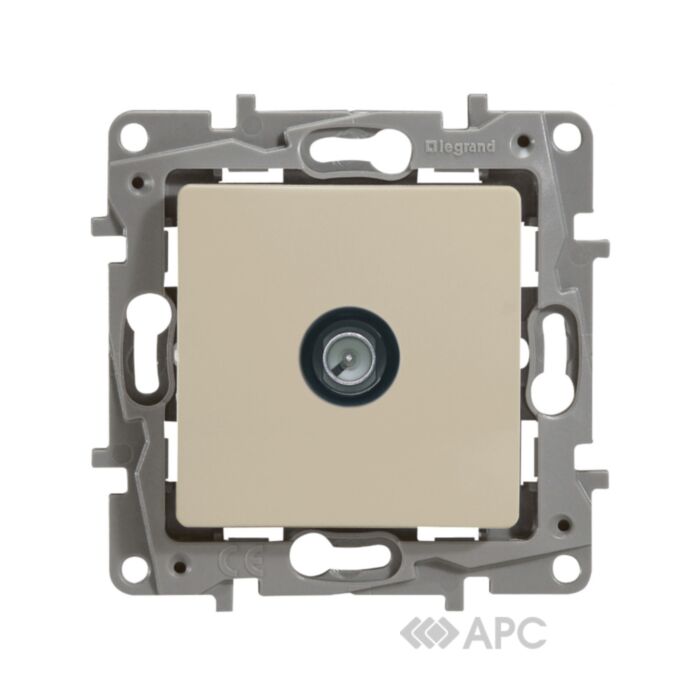 Розетка телевізійна TV Legrand Etika 672351 використовується для швидкого підключення ТВ кабелю. Процес монтажу виробу здійснюється в установчу коробку у стіновий ніші з кріпленням на фіксуючі елементи. Комплектація товару: без рамки.
