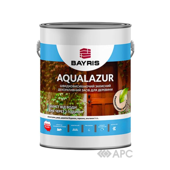 Лазурь быстросохнущая Bayris защищает древесину от гниения, синевы, грибков, насекомых. Предотвращает агрессивное воздействие УФ-излучения и влаги, оставляет открытые поры. Средство можно использовать для декоративно-защитной отделки оконных рам, садовой мебели, дверей, деревянных домов, беседок и др. Лазурь придает изделиям из дерева легкий оттенок, при этом сохраняя естественную текстуру. Условия хранения и меры предосторожности: средство советуем хранить в плотно закрытой таре, предохраняя от попадания прямых солнечных лучей и атмосферных осадков.