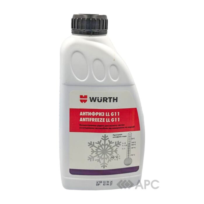 Антифриз Wurth LL G11 -70ºС 1 л голубой используется для наполнения системы охлаждения любого типа, автомобильных двигателей и теплообменных агрегатов. Средство защищает приборы от замерзания и коррозии, а также увеличивает их точку кипения. Благодаря использованию антифриза температура эксплуатации двигателя понижается к -70°С, а это значит, что автовладелец может не боятся даже самых сильных морозов. Жидкость не содержит вредных для механизма компонентов. Перед тем, как заливать антифриз, рекомендуется слить старый раствор и промыть систему специальным очистителем.