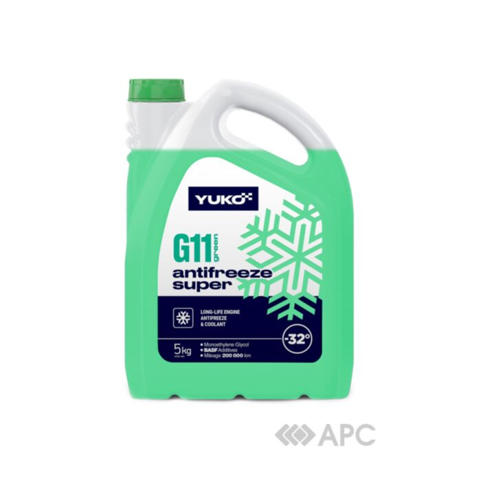 Антифриз Yuko Antifreeze -32 ºС Super G11 зеленый 5 л используется для наполнения системы охлаждения любого типа, автомобильных двигателей и теплообменных агрегатов. Средство защищает приборы от замерзания и коррозии, а также увеличивает их точку кипения. Благодаря использованию антифриза температура эксплуатации двигателя понижается к -32°С, а это значит, что автовладелец может не боятся даже самых сильных морозов. Жидкость не содержит вредных для механизма компонентов. Перед тем, как заливать антифриз, рекомендуется слить старый раствор и промыть систему специальным очистителем.