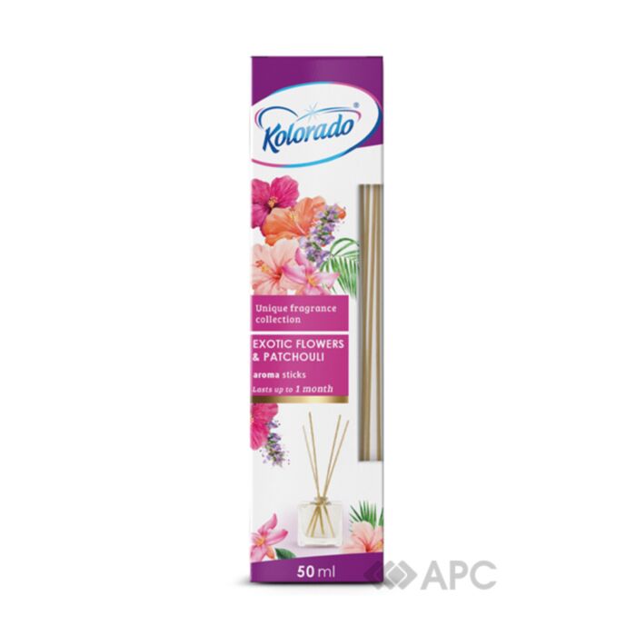 Аромадиффузор Kolorado Aroma Sticks Экзотические цветы и Пачули 50 мл — это простой и утонченный способ, позволяющий наполнить дом, офис или гостиничный номер приятным запахом, который гармонично сочетает в себе натуральные нотки с ароматическими маслами. В стеклянную бутылочку с аромажидкостью помещаются тростниковые палочки, которые пористые по своей структуре и легко распространяют запах вдоль своей основы и в воздухе. Регулировать интенсивность рассеивания благовоний очень просто. Для этого достаточно просто увеличивать или уменьшать количество палочек. Диффузор максимально практичный, красивый и эффективный элемент декора и составляющая часть комфорта помещения, которая способна расслабить и создать уютную атмосферу с минимальными затратами финансов и усилий.