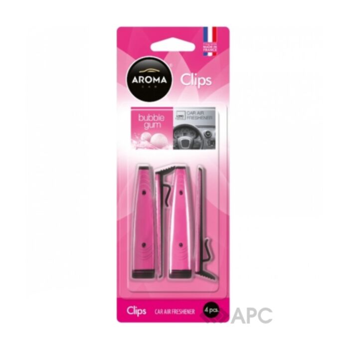 Ароматизатор Aroma Car Clips 376/92382 Bubble Gum 4 шт — это уникальное сочетание цвета, формы и запаха, которое дарит наслаждение не только обонятельным чувствам человека, но и радуют глаз совершенством оттенков и плавностью линий. Водитель в дороге может часто испытывать дискомфорт от неприятного запаха, издаваемого функциональными системами транспорта. И установленная на приборной панели клипса ароматного саше может легко исправить ситуацию, наполнив пространство ненавязчивыми, но глубокими и натуральными нотками любимых фруктов, цветов и масел.