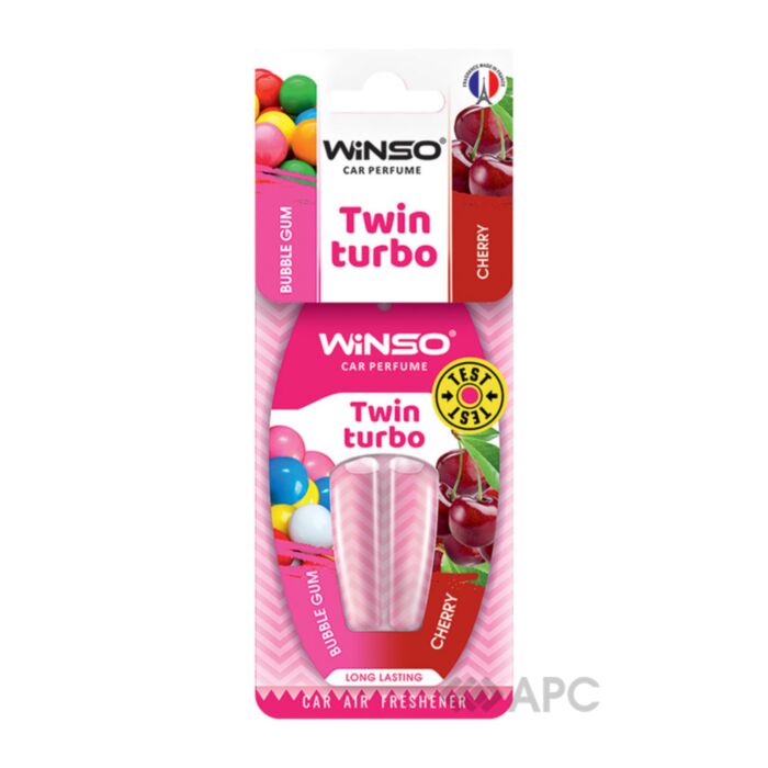 Аромат с двойной капсулой Winso Twin Turbo 538360 Bubble Gum & Cherry - это уникальное сочетание цвета, формы и запаха, который дарит наслаждение не только обонятельным ощущением человека, но и радуют глаз совершенством оттенков и плавностью линий. Водитель в дороге может часто испытывать дискомфорт от неприятного запаха, который издают функциональные системы транспорта. И подвешен к зеркалу заднего вида ароматизатор может легко исправить ситуацию, наполнив пространство ненавязчивыми, но глубокими и натуральными нотками любимых фруктов, цветов и масел.