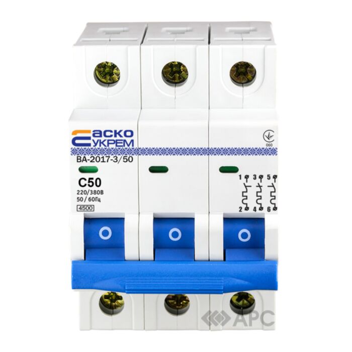 Автоматический выключатель АСКО УКРЕМ ВА-2017 3P C 50 А имеет три линии, которые одновременно его отключают. Главное предназначение аппарата – использование в схемах трехфазных сетей. Конструктивные особенности прибора заключаются в наличии защитных функций на каждом отдельном полюсе.