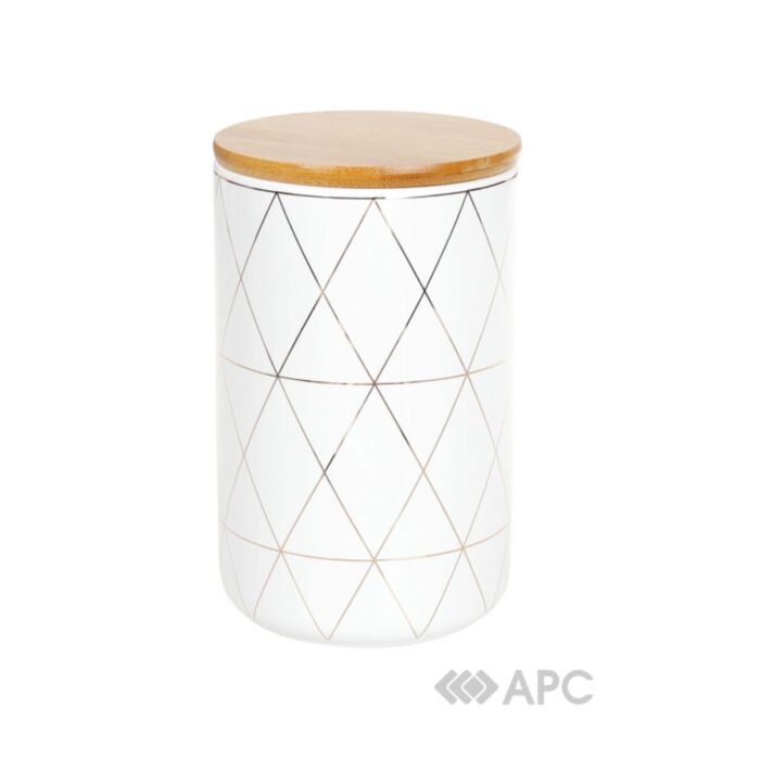 Банка BonaDi 304-911 "Ромбы" с бамбуковой крышкой 850 мл белая в каталоге ARS