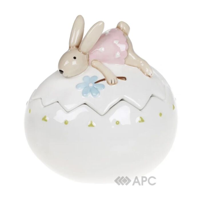 Продукция компании BonaDi является лидером на украинском рынке уже много лет, помогает создать красоту и неповторимость в Вашем доме. Банка керамическая BonaDi 834-858 Милая Зайка выполнена в форме яйца с качественной керамики с глянцевым покрытием в нежных, пастельных тонах. Данная емкость предназначена для хранения сыпучих продуктов, она не испортит Ваши продукты посторонними запахами и сохранит их сухими. Банка емкостью 450 мл, размеры: 13,5*11,5*13,8 см удачно дополнит Ваш пасхальный стол или станет частью декорирования интерьера дома. Она также может служить прекрасным подарком для родных и близких.