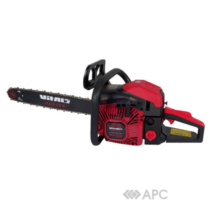 Vitals Master BKZ 4523o Kit 87777T - мощный агрегат для настоящих знатоков. Очень хорошо справляется с задачами по валке и распила деревьев благодаря мотору на 2,3 л.с. и шине длиной 15". Подходит для работы со свежей и сухой древесиной, пиломатериалами и т.д. Основная конструкция отличается надежностью и долговечностью, не требует сложного ухода и обслуживания. Скорость протягивания цепи составляет 20 м/с, обеспечивает быструю продуктивную работу. Дополнительно модель оснащена системой аварийной остановки цепи, является важной составляющей безопасности оператора. Благодаря своим параметрам изделие максимально маневренным и удобным в работах по любым уровнем сложности. Функционирует бензопила за счет бензинового двигателя внутреннего сгорания с применением специальной топливной смеси на основе масла и бензина.