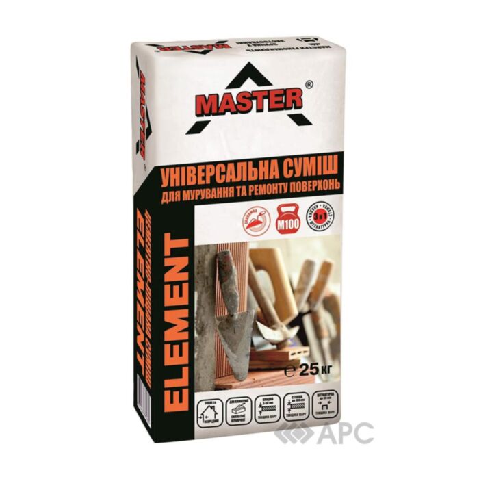 Цементно-песчаная смесь Master Element 25 кг - цементно-песчаный состав, модифицированный полимерными добавками, который можно использовать для кладки, штукатурки и стяжки снаружи и внутри здания. Делать стяжки рекомендовано на прочных основах, которые не склонны к деформированию.