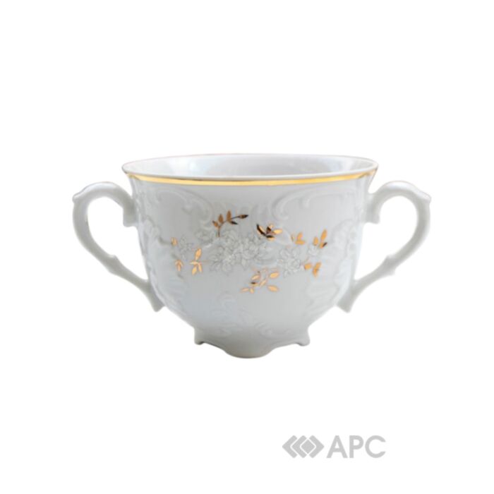 Ця чашка належить до серії Rococo 9705 від відомого польського виробника Cmielow. Вона має об’єм 330 мл, - це робить її ідеальною для подачі бульйонів або інших гарячих страв. Чашка оснащена зручною ручкою, яка забезпечує комфортне використання, та золотим обідком, що додає їй розкішного вигляду.
