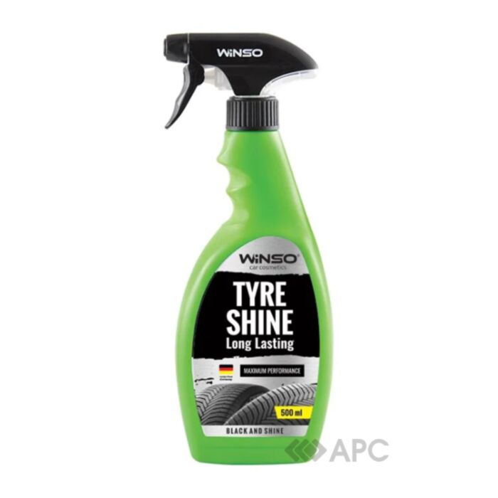 Чернение для шин Winso Type Shine Long Lasting 810950 500 мл — это отличное решение для тех, кто хочет придать резине глубокий темный блеск. Средство помогает восстановить естественный цвет колес, скрывает мелкие царапины и стойкие загрязнения, предотвращает потерю цвета. Отлично защищает от ультрафиолетового излучения, растрескивания, быстрого износа, а также других агрессивных факторов. Спрей легко, равномерно наносится, предотвращает быстрое налипание пыли и грязи. Качественный распылитель гарантирует бесперебойную, качественную работу. Объем флакона 500 мл удобно хранить в машине.