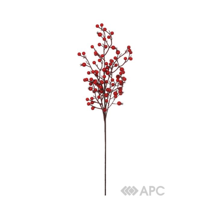 Ветка состоит из тонкого коричневого стебля с многочисленными ответвлениями, на которых расположены грозди насыщенно-красных ягод, имеющих блестящее покрытие, придающее декору праздничное сияние и объем. Изделие изготовлено из комбинированных материалов, которые обеспечивают его гибкость, долговечность и реалистичный вид. Эта ветка является универсальным украшением, которое придаст интерьеру классическое рождественское настроение и яркий акцент.