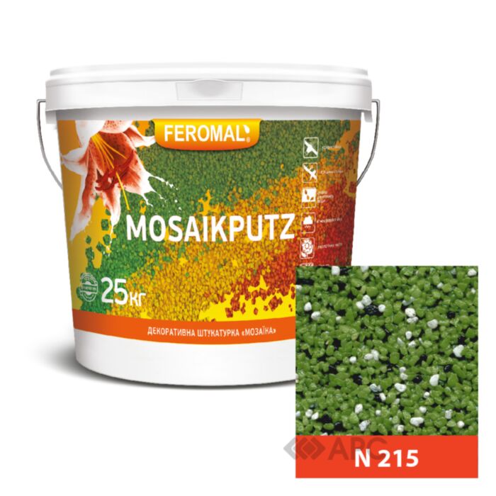 Декоративная штукатурка Feromal Мозаика N 215 25 кг производится в виде смеси, которая уже готова к использованию. Перед началом работы следует перемешать содержимое емкости с помощью строительного миксера до однородной консистенции. В основе материала есть акриловая дисперсия, окрашенные крошки и модифицирующие добавки, которые в комплексе создают уникальный продукт, используемый как для внутренней, так и для наружной отделки. Штукатурка отлично себя проявляет в условиях с разной нагрузкой, ведь характеризуется высокими эксплуатационными свойствами. В результате вы получаете прочную, ровную, сухую и чистую поверхность однородного цвета без дефектов, которая может легко стать основой любого интерьера и экстерьера.
