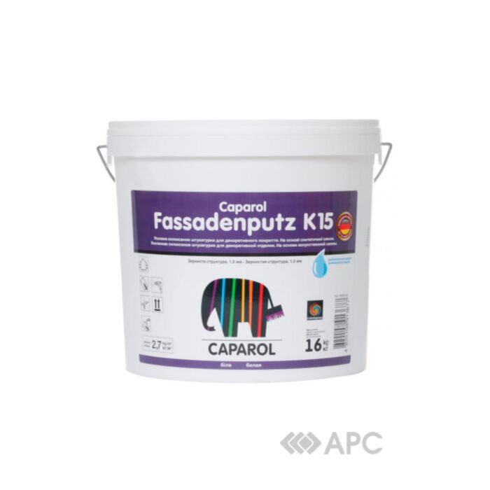 Сaparol Fassadenputz K15 - матовая дисперсионная структурная штукатурка, которая используется при наружных работах. Устойчива к атмосферным воздействиям, обладает водоотталкивающими свойствами. Разбавляется водой до нужной консистенции. Экологически чистое покрытие легко наносится, без резкого запаха. Готова к использованию. Служит заключительным покрытием для: