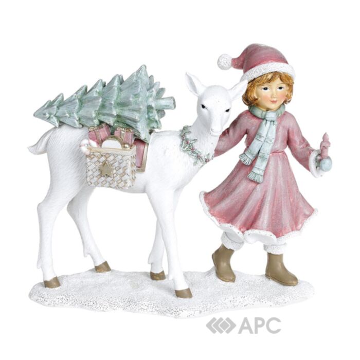 Декоративная статуэтка Девочка с оленем BonaDi 707-858 22 см станет украшением вашего интерьера, ее можно поставить на стол или журнальный столик, изящно украсив декоративными стилизованными подсвечниками, цветком Пуасенсии, новогодним венчиком и застелив рождественскую скатерть.
