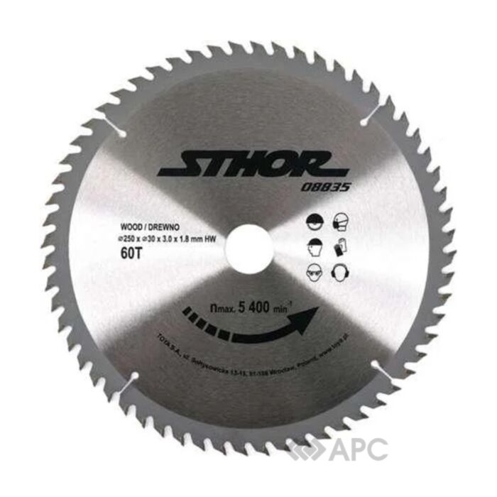 Sthor 08835 - диск широкого применения для деревообработки. Способен выполнять значительный спектр задач, связанных с обработкой пиломатериалов. Показывает высокие результаты обработки мягких и твердых пород дерева. Применяется для цельных и многослойных материалов. Количество зубцов 60. Диаметр диска 250 мм, посадочный диаметр 30 мм, толщина 1,8 мм, толщина режущего элемента 3 мм.